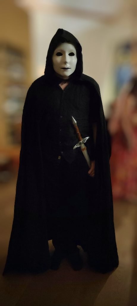 I am a huge fan of fantasy books and I came across the Irish Goddess of war, The Morrigan in the book series The Secrets of the Immortal Nicholas Flamel by Michael Scott. I love ravens and therefore I was immediately attracted to this Goddess. While working on this costume, I shifted from designing a costume for The Morrigan, towards the Raven Queen (a D&D Goddess). I designed and made this whole outfit myself: I 3D designed, printed and then painted both the mask and the sword. I wrapped leather around the hand-piece of the sword. The cape I also made myself. I intented to cover the cape with black feathers but I haven’t figuered out how to do this best, I would still want to finish it.
