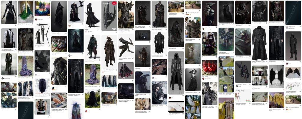 Uncountable are the hours I spent on research. 77 pins on Pinterest for The Morrigan, 48 for the Raven Queen. I created online moodboards for both.